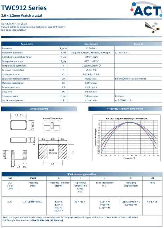 ACT晶振,TWC912晶振,SAB00003GIHD-PF(32.768MHz)晶振