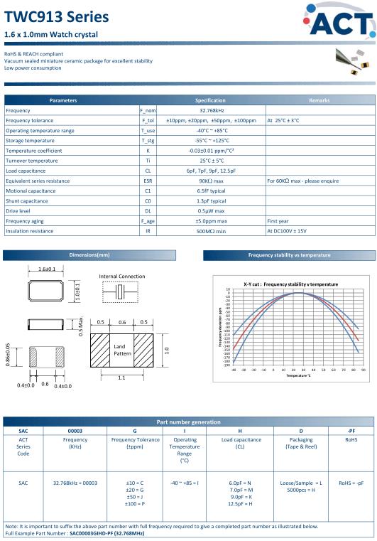 ACT晶振,TWC913晶振,SAC00003GIHD-PF(32.768MHz)晶振