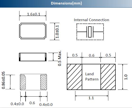 - 尺寸:1.6*1.0mm