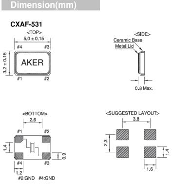 AKER晶振,CXAF-531晶振,相機專用晶振,智能手機晶振,產(chǎn)品具有高精度超小型的表面貼片型石英晶體振蕩器,最適用于移動通信終端的基準時鐘等移動通信領(lǐng)域.比如智能手機,無線通信,衛(wèi)星導(dǎo)航,平臺基站等較高端的數(shù)碼產(chǎn)品,晶振本身小型,薄型具備各類移動通信的基準時鐘源用頻率,貼片晶振具有優(yōu)良的電氣特性,耐環(huán)境性能適用于移動通信領(lǐng)域,滿足無鉛焊接的高溫回流溫度曲線要求.Aker成立于1990年,是一家全球性高科技公司,設(shè)計和制造各種頻率控制解決方案。以技術(shù)為導(dǎo)向的總部設(shè)在臺灣,我們通過全球分支機構(gòu)和分銷網(wǎng)絡(luò)提供即時服務(wù),以滿足客戶的滿意度。關(guān)注客戶的需求,Aker了解市場需求,為客戶提供全面的技術(shù)支持 - Total Solution。