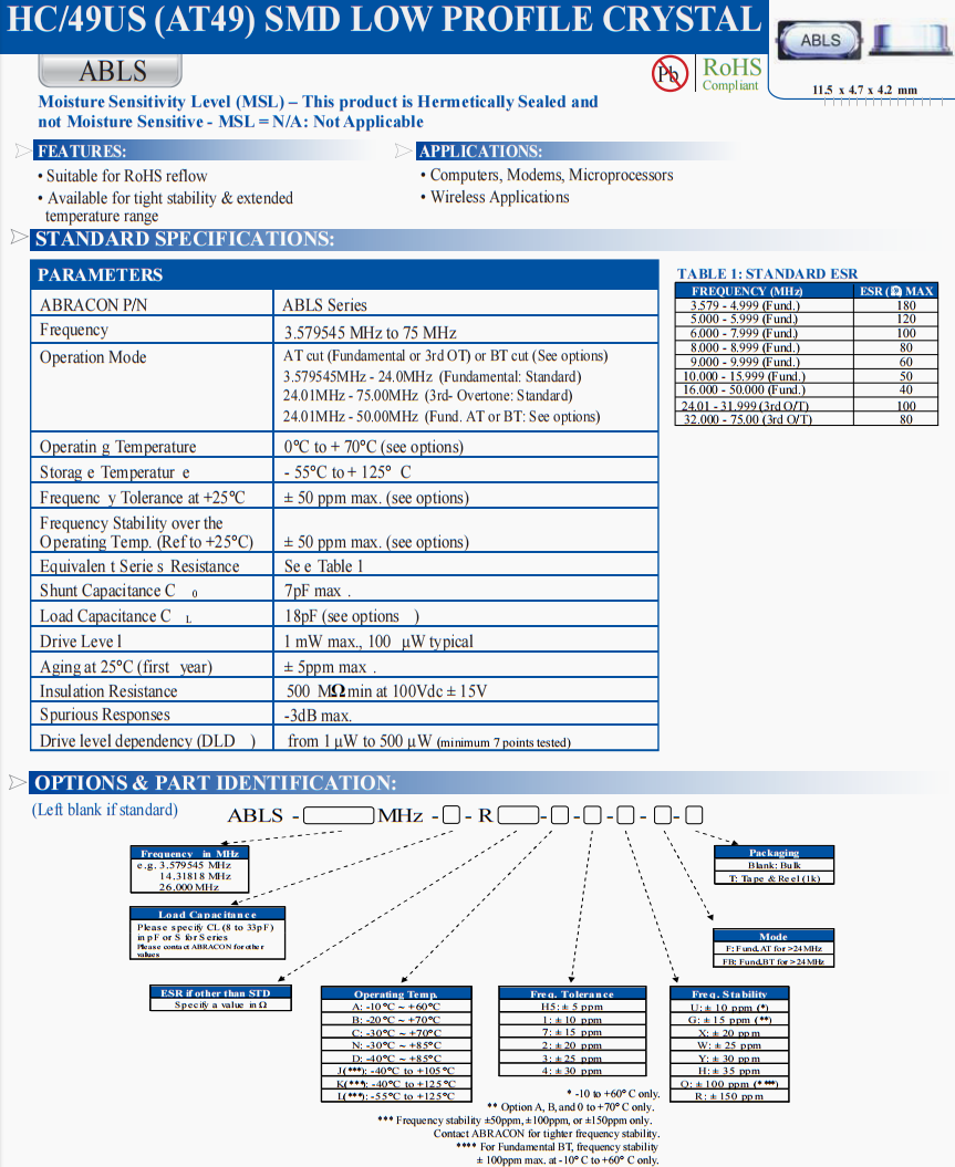 | ABRACON P/N | ABLS Series |