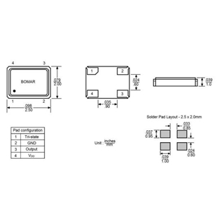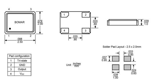 Bomar晶振,B1325-AAAS3T-10.000000晶振,SMD振蕩器