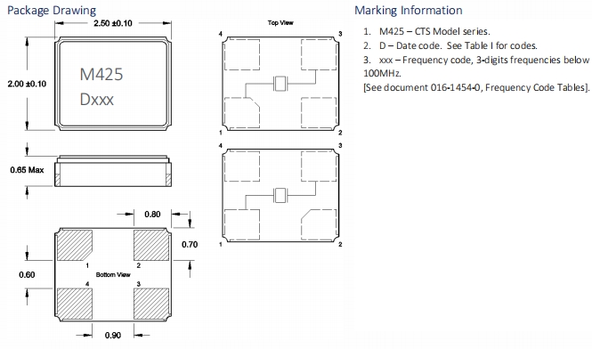 | 425F39B025M0000 | CTS晶振 | 425 | MHz Crystal | 25MHz |