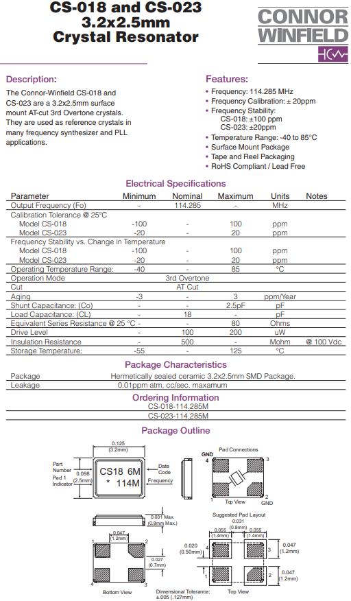 康納溫菲爾德晶振,CS-034晶振,CS-034-040.0M晶振,小型貼片石英晶振,外觀尺寸具有薄型表面貼片型石英晶體振蕩器,特別適用于有小型化要求的市場(chǎng)領(lǐng)域,比如智能手機(jī),無線藍(lán)牙,平板電腦等電子數(shù)碼產(chǎn)品.晶振本身超小型,薄型,重量輕,晶體具有優(yōu)良的耐環(huán)境特性,如耐熱性,耐沖擊性,在辦公自動(dòng)化,家電相關(guān)電器領(lǐng)域及Bluetooth,WirelessLAN等短距離無線通信領(lǐng)域可發(fā)揮優(yōu)良的電氣特性,滿足無鉛焊接的回流溫度曲線要求.Connor-Winfield Corporation 是一家私人控股的美國電子產(chǎn)品制造商。1963 年成立后,Connor-Winfield 主要專注于設(shè)計(jì)和制造用于各種電子應(yīng)用的石英計(jì)時(shí)電路和振蕩器。在 1990 年代,Connor-Winfield 擴(kuò)展到其他產(chǎn)品領(lǐng)域,同時(shí)繼續(xù)關(guān)注其核心計(jì)時(shí)根源。
