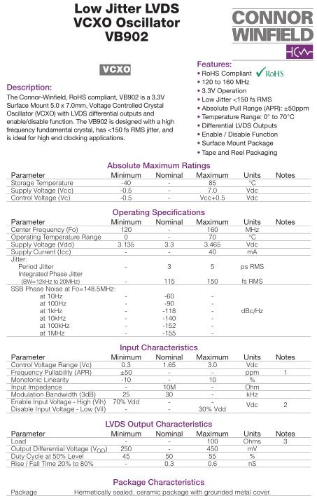 康納溫菲爾德晶振公司是美國一家專業生產進口石英晶體振蕩器,石英晶體的晶振品牌,客戶遍布世界五十多個國家并得到所有用戶的一致認可.康納溫菲爾德晶振,VB902晶振,VB902-120.0M晶振.