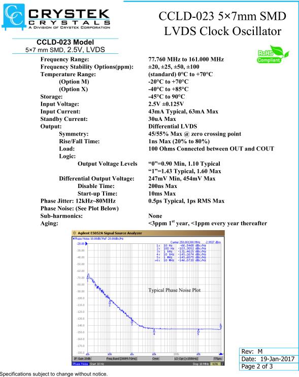 Crystek晶振,CCLD-023晶振,CCLD‐023X‐50‐155.520晶振