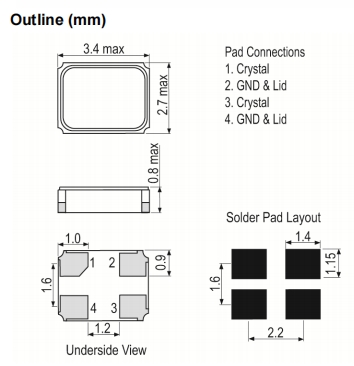 | Type系列: | MHz Crystal | 腳位Termination: | 4pad |