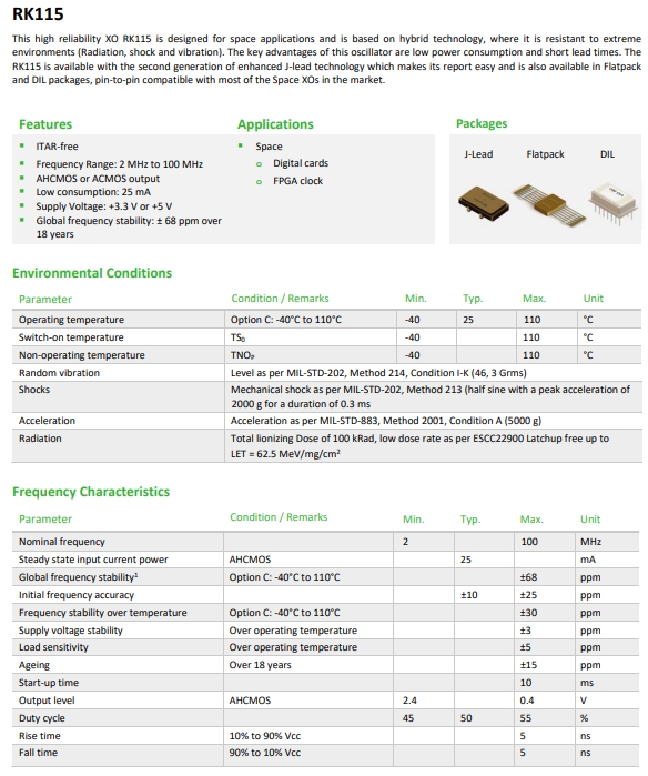 | Manufacturer品牌 | Rakon | OperatingTemperature溫度 | ‐40°C to 110°C |