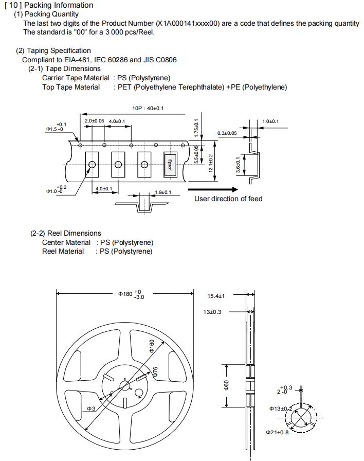 FC-135R|X1A000141000500數據手冊|32.768KHZ|無線分時鐘模塊|12.5pF 尺寸圖 包裝圖