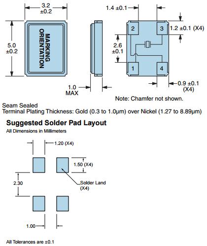 在一個不同擴張系數電路板(環氧玻璃)上焊接陶瓷封裝石英晶振時,在溫度長時間重復變化時可能導致端子焊接部分發生斷裂,請事先檢查焊接特性。Ecliptek晶振,EA3250QA12-24.000M晶振,SMD晶振.
