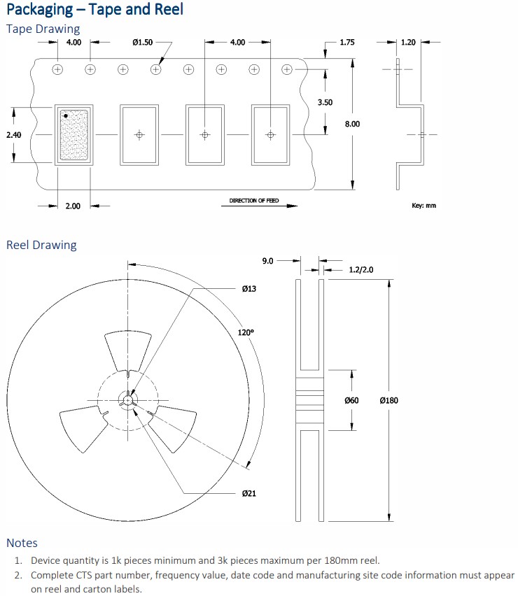 | 402F2001XIAR | CTS晶振 | 402 | MHz Crystal | 20MHz | 4-SMD, No Lead |