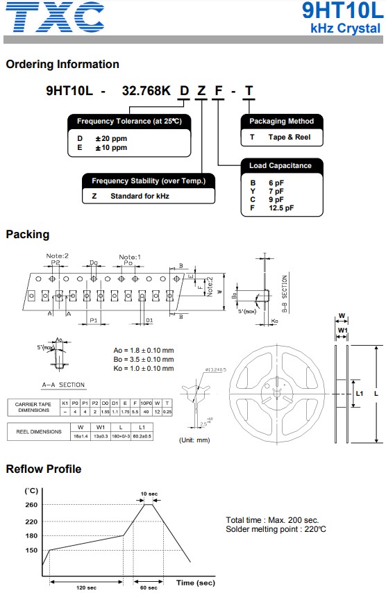 | 9HT10-32.768KBZB-T | TXC Crystal | 9HT10 | kHz Crystal (Tuning Fork) | 32.768kHz |