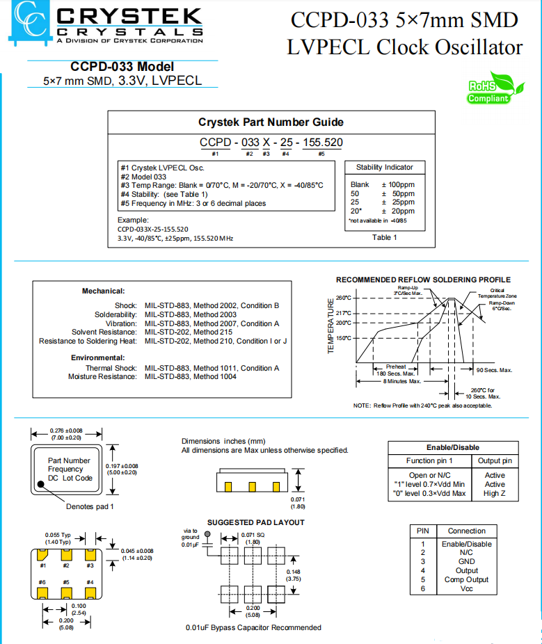 LVPECL時鐘振蕩器CCPD-033M-50-156.250用于數字視頻信號,CCPD-033相關編碼: