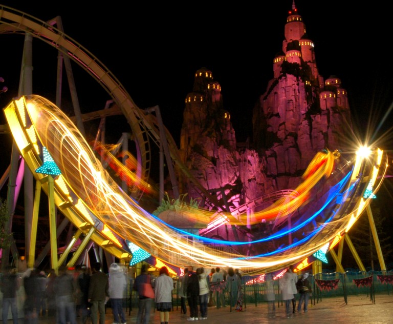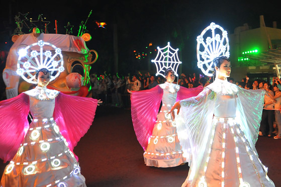 我們欣喜若狂很期待哦,帶著好心情,就在5:30出發了去歡樂谷狂歡,小伙伴們爭奇斗艷,各有各特色!一路上大家都保持沉默玩起手機來.到下車了我們成群結隊走上歡樂谷的臺階,看到遠方的南瓜燈,和炫彩繽紛的LED燈,哇!好多人啊,他們穿的各式各樣,噢?哪里還有假面舞會,各種小鬼翩翩起舞啊,真是太熱鬧了.大家都迫不及待的想融入,我們走進化妝間,趕快換上新衣服和面罩,匆匆忙忙的來到到廣場,廣播吼起來,HAPPY!HAPPY!萬圣夜!恐怖,驚悚外不說,關鍵是6大冒險指數為5星的鬼屋以外,更有鬼界集市,經過上海灘就有可能迷失在午夜的電車里,品嘗活人串燒,喪尸橫行金礦鎮,挑戰不是一點點.呼~