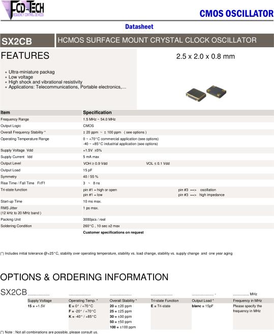 FCD-Tech晶振,SX2CB晶振,SX2CB-15K25E15pF-16.000MHz晶振,有源晶振,是指晶體本身起振需要外部電壓供應(yīng),起振后可直接驅(qū)動CMOS集成電路,產(chǎn)品本身已實現(xiàn)與薄型IC(TSSOP封裝,TVSOP封裝)同樣的1mm厚度,斷開時的消費電流是15µA以下,編帶包裝方式可對應(yīng)自動搭載及IR回流焊接(無鉛對應(yīng))產(chǎn)品有幾種電壓供選1.8V,2.5V,3V3.3V,5V,以應(yīng)對不同IC產(chǎn)品需要.