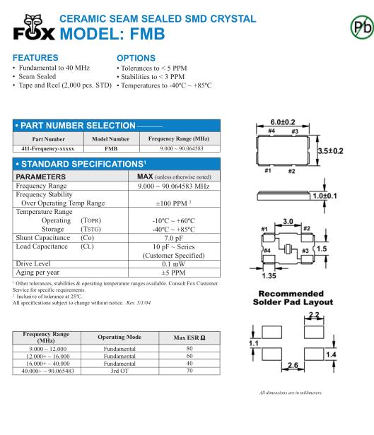 | FOX晶振規格 | 單位 | FMB晶振頻率范圍 | 石英晶振基本條件 | |