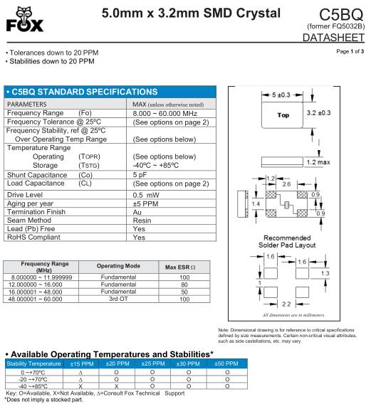 | FQ5032B-16.000 | FOX晶振 | C5BQ | MHz Crystal | 16MHz | ±30ppm |