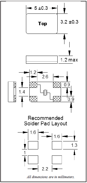 福克斯晶振C5BQ,FQ5032B-20.000無(wú)源晶體 尺寸圖