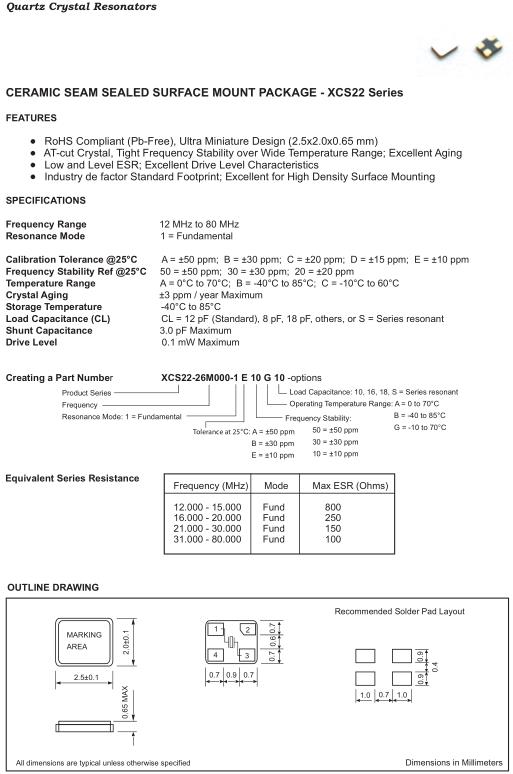 富通晶振,XCS22晶振,XCS22-26M000-1E20G10晶振