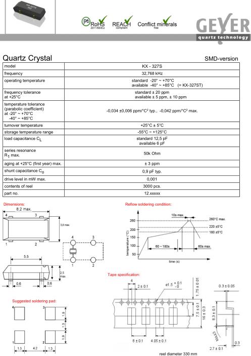 | GEYER晶振規(guī)格 | 單位 | KX-327S晶振頻率范圍 | 石英晶振基本條件 | |