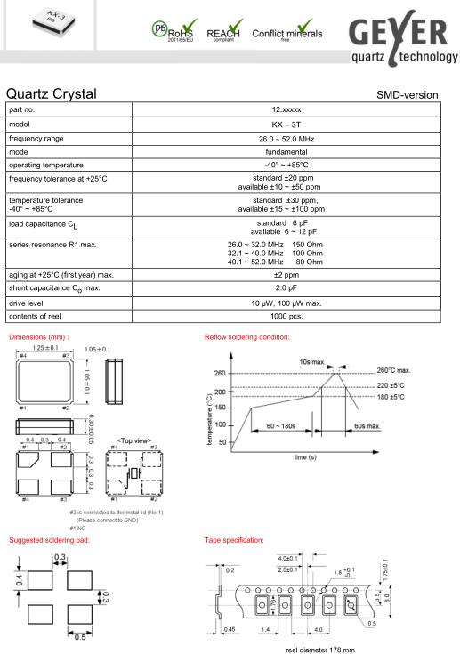 | GEYER晶振規(guī)格 | 單位 | KX–3T晶振頻率范圍 | 石英晶振基本條件 | |