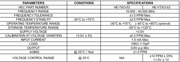 HEC晶振,HE-TXO-53晶振,TCXO振蕩器