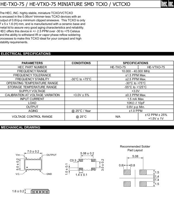 HEC晶振,HE-VCXO-75晶振,VC-TCXO晶振