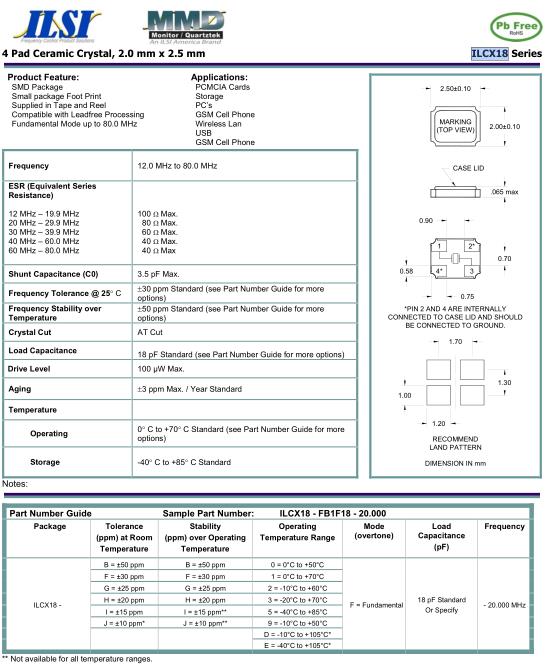| ILSI晶振規格 | 單位 | ILCX18晶振頻率范圍 | 石英晶振基本條件 | |