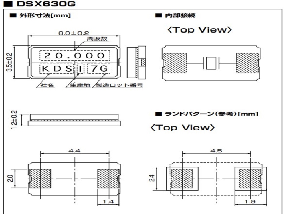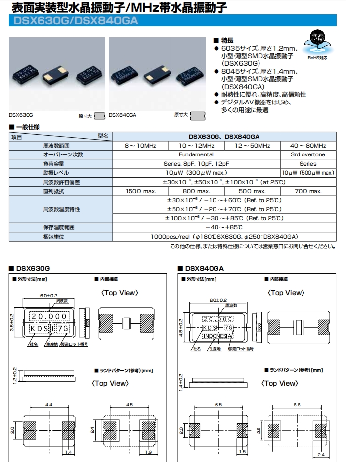 | 梱包単位 | 1000pcs./reel(φ180:DSX630G、φ250:DSX840GA) | ||||