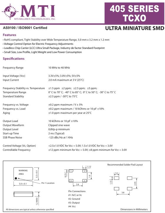 米利倫晶振,405晶振,SMD晶振,小型SMD有源晶振,從最初超大體積到現(xiàn)在的7050mm,6035mm,5032mm,3225mm,2520mm體積,有著翻天覆地的改變,體積的變小也使產(chǎn)品帶來了更高的穩(wěn)定性能,接縫密封石英晶體振蕩器,精度高,覆蓋頻率范圍寬的特點(diǎn),SMD高速自動(dòng)安裝和高溫回流焊設(shè)計(jì),Optionable待機(jī)輸出三態(tài)輸出功能,電源電壓范圍:1.8V~5V,高穩(wěn)定性,低抖動(dòng),低功耗,主要應(yīng)用領(lǐng)域:無線通訊,高端智能手機(jī),平板筆記本W(wǎng)LAN,藍(lán)牙,數(shù)碼相機(jī),DSL和其他IT產(chǎn)品的晶振應(yīng)用,三態(tài)功能,PC和LCDM等高端數(shù)碼領(lǐng)域,符合RoHS/無鉛.我們邀請(qǐng)您體驗(yàn)“MTI差異”。聯(lián)系我們團(tuán)隊(duì)的任何成員討論您的申請(qǐng),并允許我們邀請(qǐng)您訪問位于馬薩諸塞州歷史悠久的Newburyport鎮(zhèn)波士頓以北約30英里的現(xiàn)代化制造工廠。