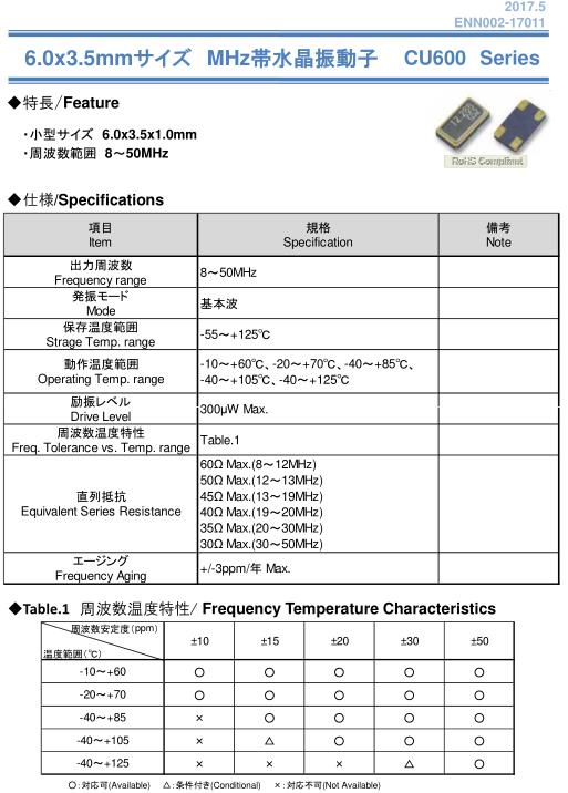 - 產(chǎn)品描述:納卡晶振,CU600晶振,6035mm貼片晶振,貼片晶振本身體積小,超薄型石英晶體振蕩器,特別適用于有目前高速發(fā)展的高端電子數(shù)碼產(chǎn)品,因?yàn)榫д癖旧硇⌒突枨蟮氖袌鲱I(lǐng)域,小型,薄型是對應(yīng)陶瓷振蕩器(偏差大)和普通的石英晶體振...