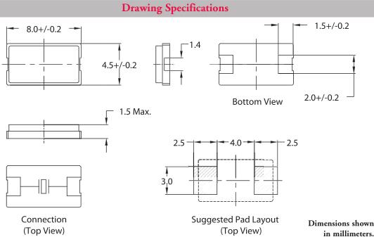 | Operating Temp. Characteristics | -20°C to 70°C ±50 ppm or specify |