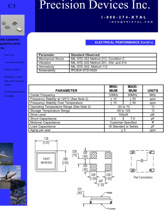 PDI晶振,C3晶振,3225mm無源晶振,超小型表面貼片型SMD晶振,最適合使用在汽車電子領域中,也是特別要求高可靠性的引擎控制用CPU的時鐘部分.低頻晶振可從7.98MHz起對應,小型,超薄型具備強防焊裂性,石英晶體在極端嚴酷的環境條件下也能發揮穩定的起振特性,產品本身具有耐熱,耐振,耐撞擊等優良的耐環境特性,滿足無鉛焊接以及高溫回流溫度曲線要求,符合AEC-Q200標準.PDI晶振是來自美國的頻率元件供應商,專業設計和量產各種高精度,高可靠,高穩定性,耐高溫,低功耗的優質正品晶振,每一顆PDI石英晶體振蕩器型號在市場上都能大賣,因其產品的優良性以及合理的價格總能讓眾多客戶慕名前來采買,導致PDI晶振名氣大漲,銷量創新高,堅持以一流的服務,優質的產品帶走用戶超值的體驗,讓用戶追隨他們的腳步前行,他們有著不斷超越自我的信念才使得PDI晶振,在業界聞名于世,同時,也用產品來證實他們的實力無人可敵,并開拓自己的新天地.