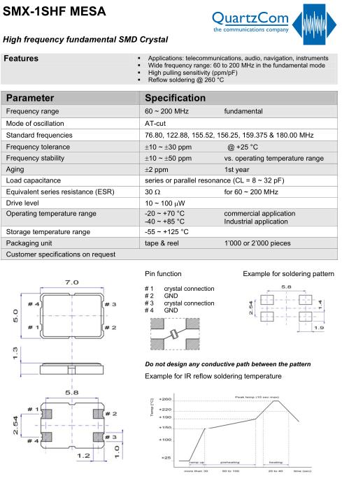 | QuartzCom晶振規格 | 單位 | SMX-1SHF晶振頻率范圍 | 石英晶振基本條件 |