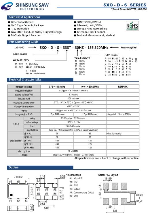 SHINSUNG晶振,SXO-D-S晶振,SXO-D-S-33ST-30HZ-155.520MHz晶振