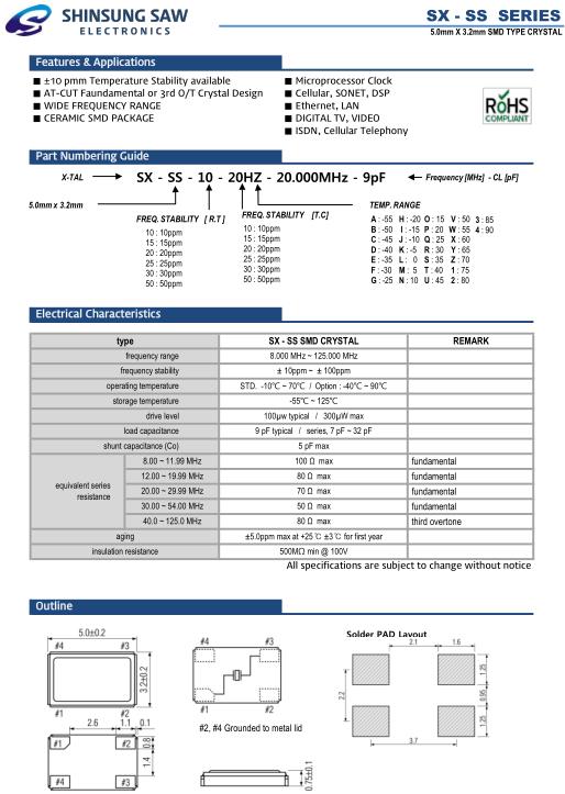 - 產(chǎn)品描述:新松晶振,SX-SS晶振,SX-SS-10-20HZ-20.000MHz-9pF晶振,貼片石英晶體,體積小,焊接可采用自動(dòng)貼片系統(tǒng),產(chǎn)品本身小型,表面貼片晶振,特別適用于有小型化要求的電子數(shù)碼產(chǎn)品市場(chǎng)領(lǐng)域,因產(chǎn)品小型,薄型優(yōu)勢(shì),耐環(huán)境特性,包括耐...