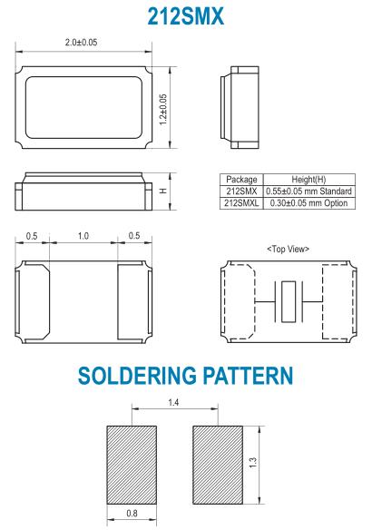 SMI晶振,212SMX晶振,兩腳貼片晶振