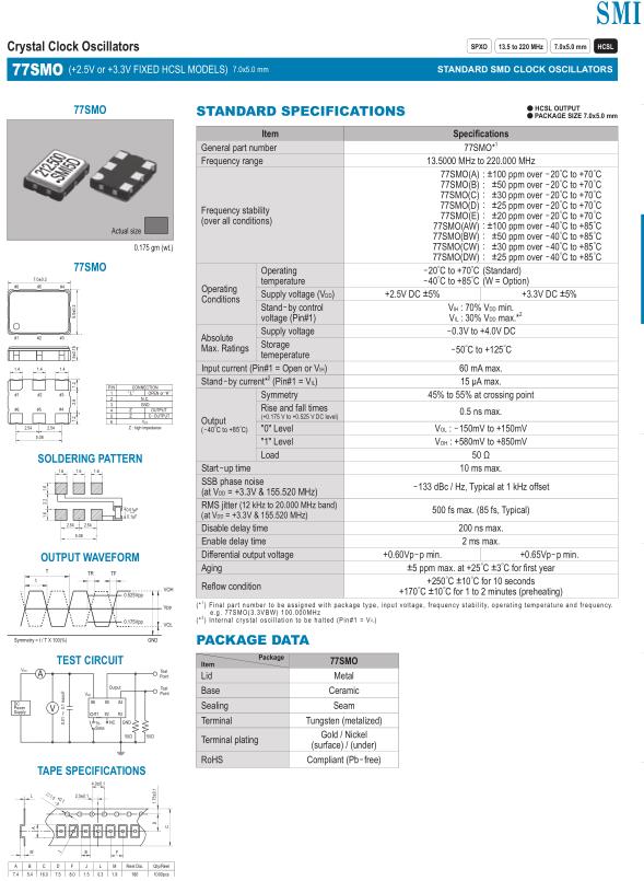 SMI晶振,77SMO晶振,SPXO貼片晶振