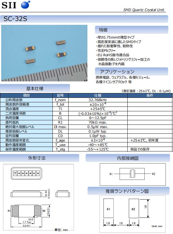 | Q-SC32S0322070AAAF | Seiko精工晶振 | SC-32S | kHz Crystal (Tuning Fork) | 32.768kHz | ±20ppm |
