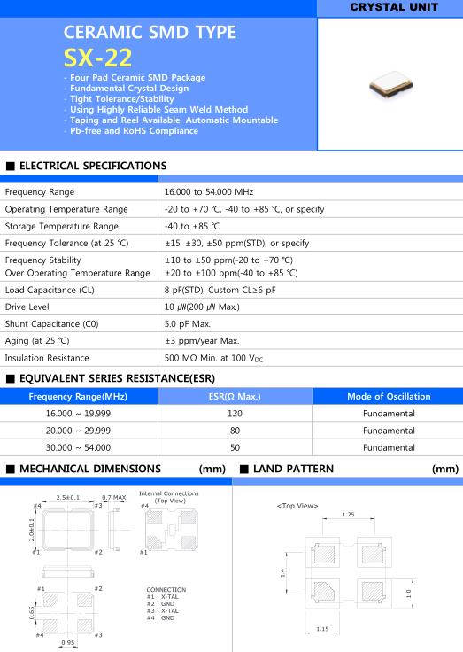 - 產品描述:Sunny晶振,SX-22晶振,SQ8130J624.00000TR晶振,小型貼片石英晶振,外觀尺寸具有薄型表面貼片型石英晶體振蕩器,特別適用于有小型化要求的市場領域,比如智能手機,無線藍牙,平板電腦等電子數碼產品.晶振本身超小型,薄型,重...