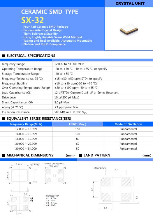 Sunny晶振,SX-32晶振,SP8130J6–12.00000–T&R晶振,超小型表面貼片型SMD晶振,最適合使用在汽車電子領域中,也是特別要求高可靠性的引擎控制用CPU的時鐘部分.低頻晶振可從7.98MHz起對應,小型,超薄型具備強防焊裂性,石英晶體在極端嚴酷的環境條件下也能發揮穩定的起振特性,產品本身具有耐熱,耐振,耐撞擊等優良的耐環境特性,滿足無鉛焊接以及高溫回流溫度曲線要求,符合AEC-Q200標準.