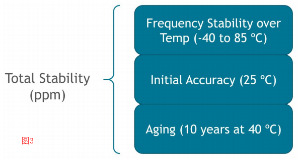 頻率穩(wěn)定性衡量有源晶體振蕩器的輸出頻率由于溫度變化,在運行期間可能發(fā)生變化,如果頻率漂移超出應(yīng)用程序的預(yù)期,可能會出現(xiàn)定時誤差發(fā)生,頻率穩(wěn)定性以百萬分率或ppm表示,相對于特定溫度范圍內(nèi)的標(biāo)稱頻率,完整的測量潛在的頻率偏差稱為總穩(wěn)定性,它是總和頻率穩(wěn)定性隨溫度變化,初始精度在25°C,老化超過a指定的時間和溫度,如圖3所示,總穩(wěn)定性揭示了振蕩器可能產(chǎn)生的最壞情況可能的頻率使用壽命.