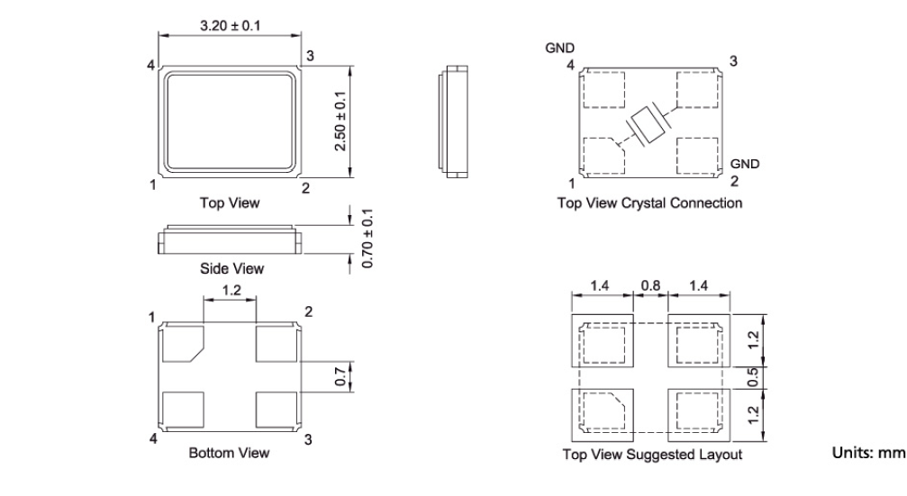 | Size/Dimension尺寸 | 3225小型貼片晶振 | 安裝方式 Installation: | Surfacemount |