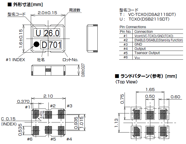 日本大真空株式會社,DSB211SDT溫補晶振,六腳貼片晶振,溫補晶振(TCXO)產品本身具有溫度補償作用,高低溫度穩定性:頻率精度高0.5 PPM~2.0 PPM,工作溫度范圍: - 30度~85度,電源電壓:1.68V~3.5V之間可供選擇,產品本身具有溫度電壓控制功能,世界上最薄的晶振封裝,頻率:26兆赫,33.6兆赫,38.4兆赫,40兆赫,因產品性能穩定,精度高等優勢,被廣泛應用到一些比較高端的數碼通訊產品領域,GPS全球定位系統,智能手機,WiMAX和蜂窩和無線通信等產品,符合RoHS/無鉛.