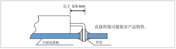 在一個不同擴張系數電路板(環(huán)氧玻璃)上焊接陶瓷封裝產品時,在溫度長時間重復變化時可能導致端子焊接部分發(fā)生斷裂,請事先檢查焊接特性.