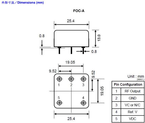 | 石英晶振規(guī)格 | 單位 | FOC-A 25.4*25.4mm 晶振說(shuō)明 | 進(jìn)口振蕩器基本條件 |