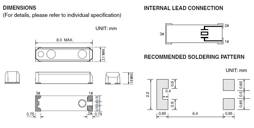 - 尺寸:8.0*2.1*1.6mm
